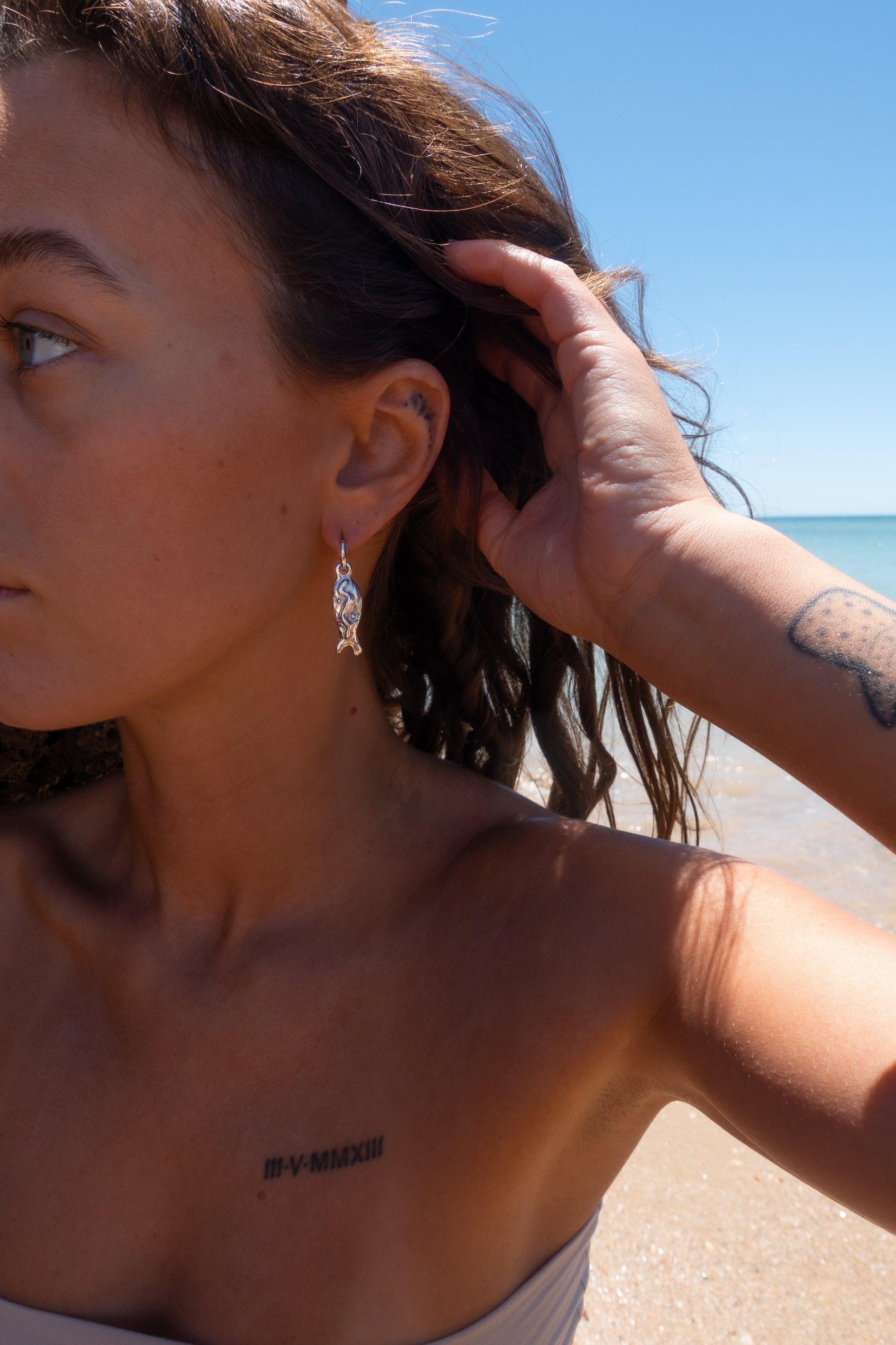 Handmade chunky swirly fish charms on 8mm huggies. Made to stay nice and close to your lobes to withstand the wild.
